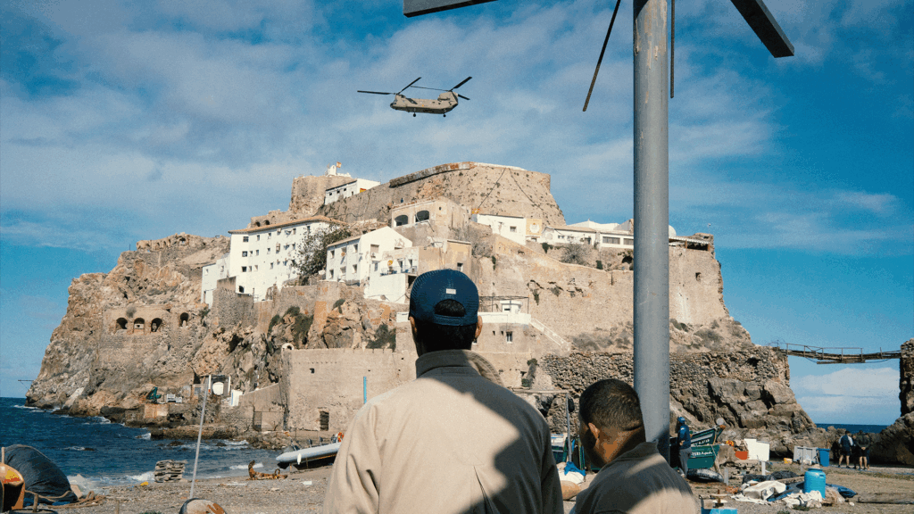 Sinopsis: En el istmo arenoso de la frontera más corta del mundo hay una cuerda azul de 80 metros que nadie puede cruzar. Separa España de Marruecos, Europa de África. A un lado, el fortificado puesto fronterizo español de Peñón de Vélez de la Gomera; al otro, el pueblo pesquero de Badis. Dos mundos paralelos que solo se cruzan con miradas y susurros. Esta película explora una tierra donde lo simbólico y lo político convergen, y la realidad supera a la ficción.