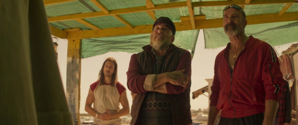 De hecho, la primera escena de acción –pasados tan solo unos minutos de metraje– ocurre durante una noche de tormenta. “La parte donde Luis (Zahera) salta a un barco para detener al mexicano y los franceses parece que tiene lugar en altamar, pero se rodó en tierra, en el Puerto Sherry”, relata Ariza sobre esta secuencia. El momento en el que lo incautan, sin embargo, sucede en el Puerto de la Bahía de Cádiz.