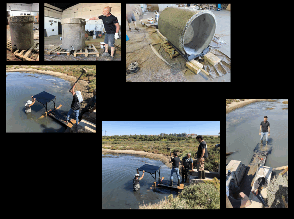 Para resolver este problema, primero vaciaron el estero y se quedaron con una superficie de barro. Para sujetar el túnel, Nolla explica que diseñaron en su taller una estructura metálica que se sostenía con un conjunto de tres estacas que quedaban por debajo de la superficie.